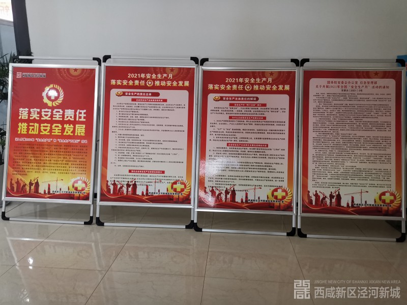 安全生产月期间,制作专题安全宣传视频并在泾河新城管委会东门大厅、电梯间、崇文塔、乐华城、茯茶镇、管委会办事大厅、各街镇办事大厅等处的LED屏、楼宇电视进行宣传播放,向市民宣传应急常识和安全知识,提醒大家注意日常安全风险防范。