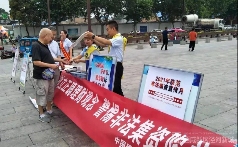 泾河新城金融办安排各镇、各金融机构在行内大厅、就近社区、广场等设立防范非法集资现场咨询台,并摆放相关知识宣传手册,向来往群众进行金融知识和理财常识的宣传,增强群众对非法集资行为的识别和防范能力。各镇加强公共场所宣传,充分发动一线部门、社区志愿者等基层力量,增强宣传渗透力,开展灵活多样的“非接触”宣传,减少人员聚集。