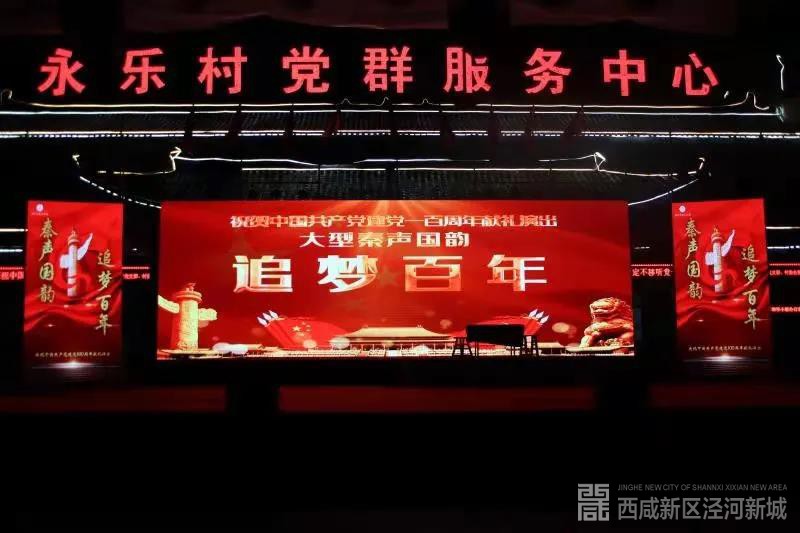 百年征程波澜壮阔,百年初心历久弥坚。为庆祝中国共产党成立100周年,6月17日,西咸新区泾河新城永乐镇举办了“忆往昔峥嵘岁月,庆百年盛世华诞”系列活动之秦声国韵《梦回百年》大型献礼演出。