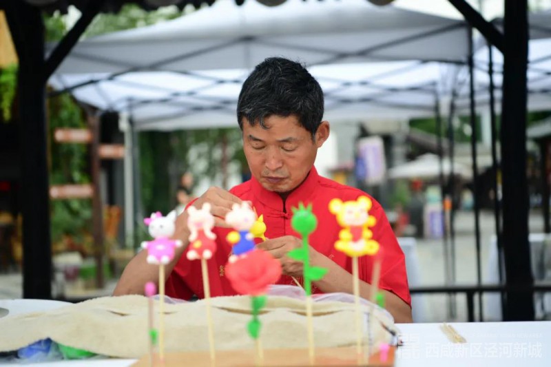本次活动为期3天,将为泾河人民献上丰厚的文化大餐,全面展示近年来非遗保护工作的优秀成果。活动现场,一大批省、市、县级泾河非物质文化遗产项目及传承人悉数亮相,共同开启2021泾河新城非遗文化日活动,他们带来了极具泾河特色的非遗项目和特产,友军羊肉、艺术花馍、剪纸、花鸟字、捏面人、沙画瓶、马勺脸谱、吹糖人等等,手指灵动下,各具特色的文化艺术品完美呈现。这些非遗传承人正在用自己的方式,传承非遗保护初心。