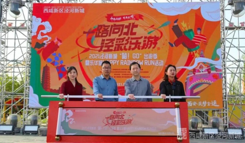 5月1日,“一路向北·泾彩乐游”2021西咸新区泾河新城“嗨 GO”出游季暨乐华城Happy Rainbow run活动在乐华恒业欢乐世界启动。随着发令枪响,近万名参赛选手在跑道上共同奔向“欢乐泾河”。启动仪式上,由泾河新城党委宣传部联合凤凰网陕西共同制作的歌曲MV《泾河!我爱我的城》也同步首发。