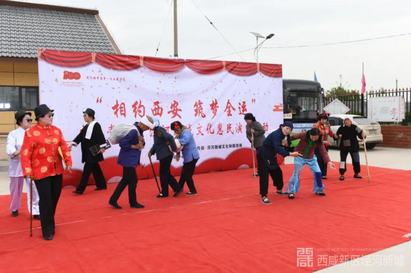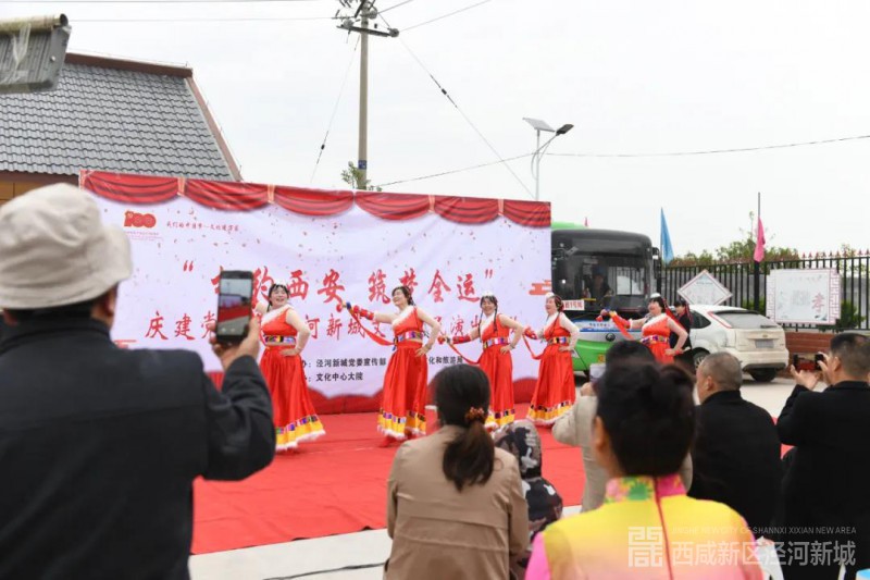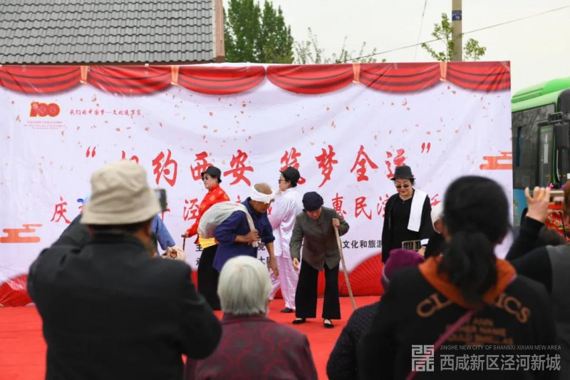 4月13日下午,天空下起了小雨,但在西咸新区泾河新城泾干街办花里村文化广场却坐满了等待观看演出的老百姓。下午5点整,由泾河新城党委宣传部、文化和旅游局主办的“相约西安·筑梦全运”庆建党百年文化惠民系列活动在这里盛装亮相。