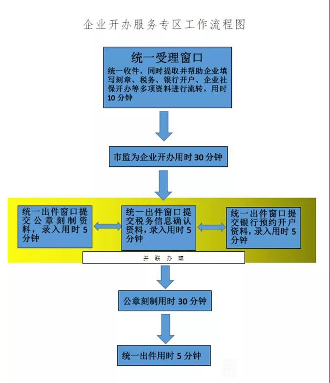 3月23日,当前台值班人员得知张婷需要办理企业开办业务后,马上联系帮办人员领她走进自助专区核准企业信息;接下来,由综合窗口统一接件,帮她填写资料、录入信息;最后,分别流转至市监、公章刻制、税务登记、银行开户等环节联合审批。仅仅用了一个多小时,企业开办服务专区的工作人员就将一系列的证件交到了她的手里。