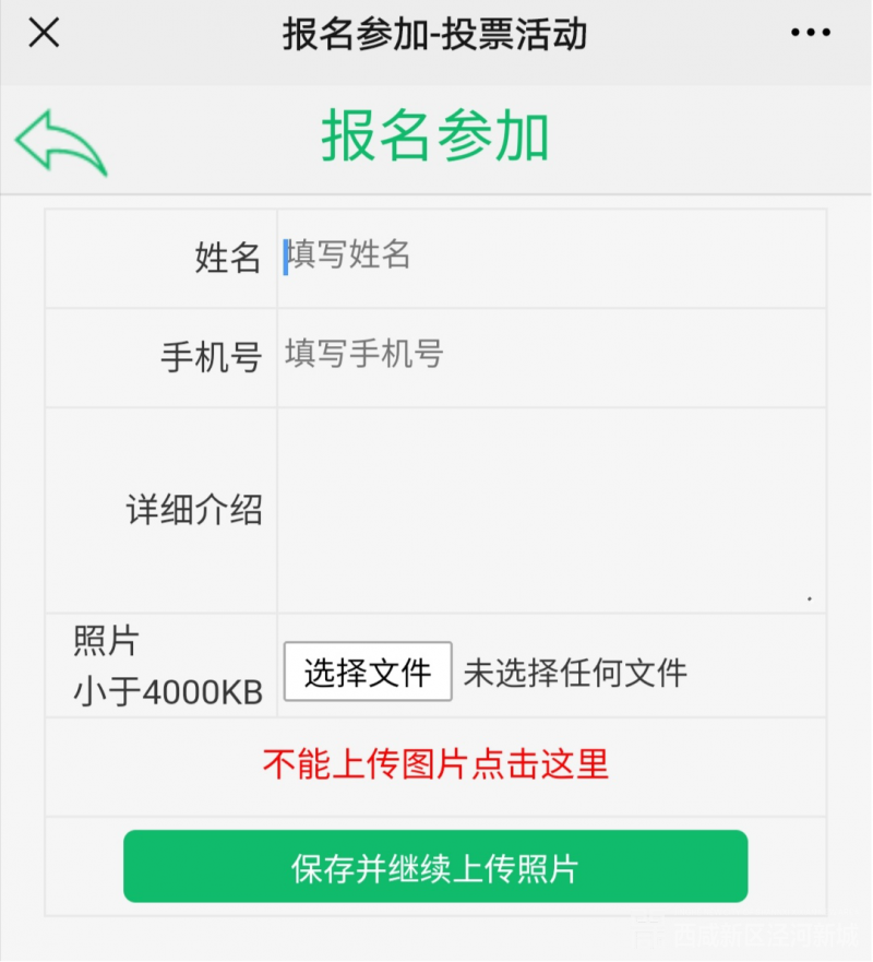 第二步、点击选择文件,选择手机文件对应的照片,完成后点保存,页面显示报名成功。