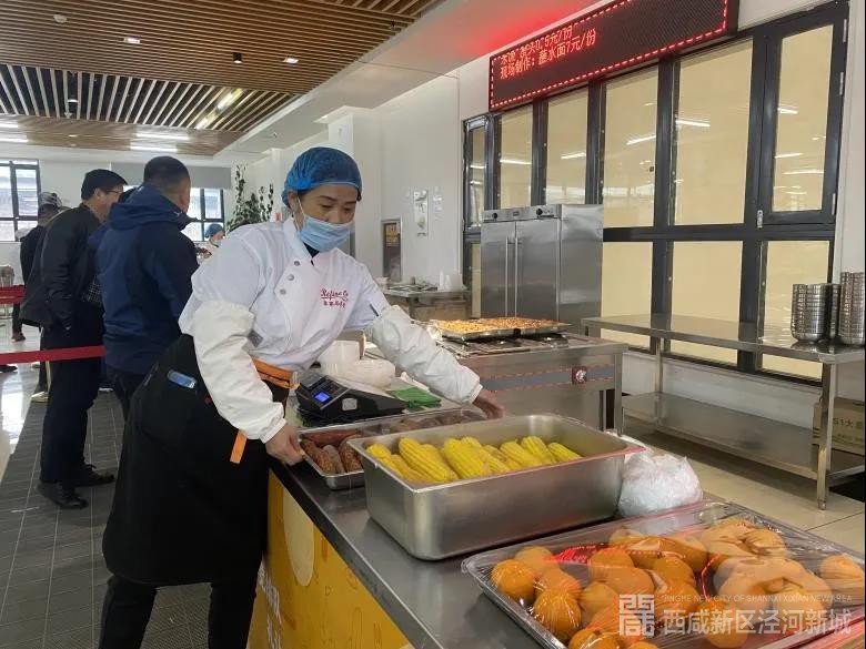 泾河新城城市综合服务有限公司再添新荣誉,泾河新城产业孵化基地综合楼员工食堂占地面积约1000平方,食堂职工37人,保障孵化园区近700余人就餐。