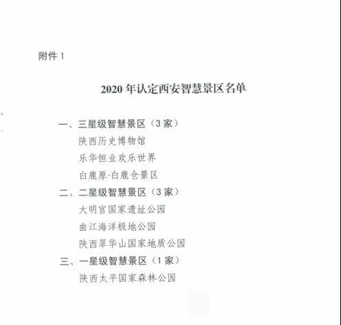 12月3日,西安市文化和旅游局公布了西安市首批智慧景区名单本批共有7个景区被认定为西安市智慧景区其中三星级、二星级智慧景区各3个一星级智慧景区1个泾河新城乐华恒业欢乐世界与陕西省历史博物馆等3家景区并列被认定为西安市首批“三星级智慧景区”。