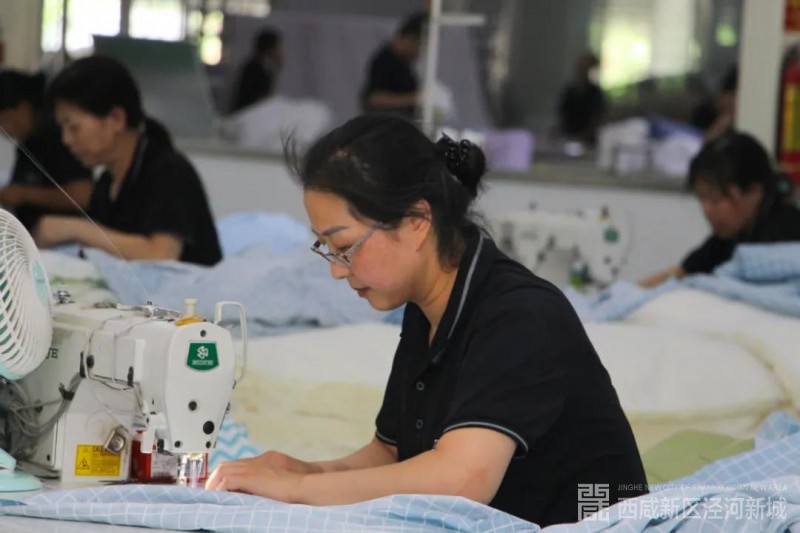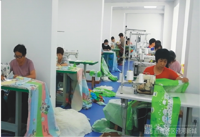 今年3月份,泾河新城泾干街道吉元村的村头出现了一番忙碌的景象,一座占地120平米的工厂拔地而起,一台台机器被运送至此,村干部在村喇叭上传递出要招聘的信息。短短一个月后,一家名为“泾河新城百年新业吉元村扶贫社区工厂”正式落成,20多名村里的妇女接受7天的培训,掌握了酒店、幼儿园等床上用品的缝纫技术,开始正式上岗。每天上午8点30,社区工厂外停了一排电动车,场内不闻人语,整齐的机杼声连绵不断。