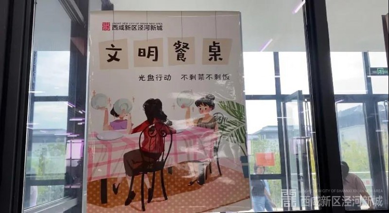 在西咸新区泾河新城机关食堂内,随处可见关于文明就餐的标语、提示牌和墙体画。新城更是每年开展两次伙食问卷调查与文明餐桌行动,在有效提升员工就餐质量的同时引导大家适度取餐、按需取食。
