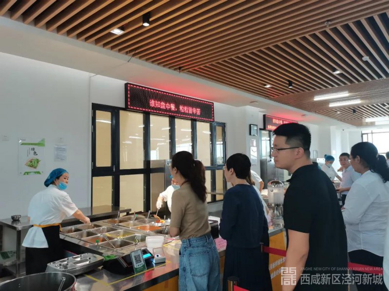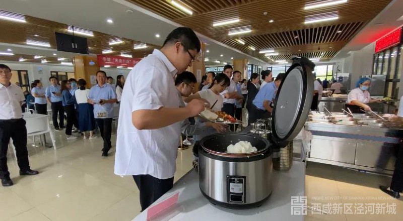 长期以来,泾河新城机关食堂一方面鼓励员工就餐时勤拿少取、杜绝浪费,努力倡导并践行“光盘行动”;另一方面实行了“米饭自取”、“半份半价”和“小份适价”的系列举措,有效杜绝了餐饮浪费现象。