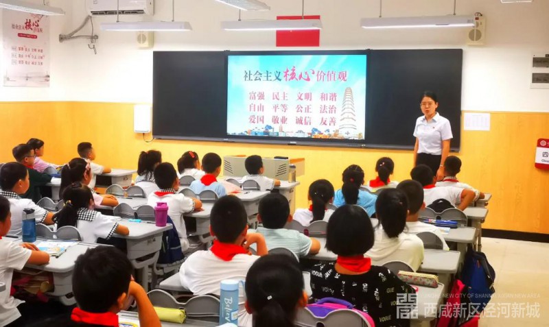 为做好“开学第一课”,泾河新城紧密结合“扣好人生第一粒扣子”主题教育,融入文明城市创建和引导未成年人文明出行、文明餐桌、节约粮食等相关内容,倡导学生讲文明、遵礼仪、守纪律、传美德、树新风。