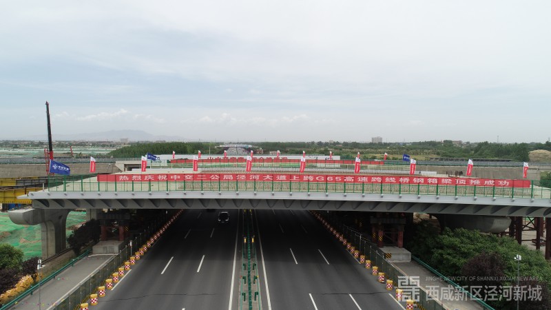 7月20日,西咸新区泾河新城泾河大道上跨G65W高速跨线桥正式通车。仅用15个月就建成了这一重大民生工程,实现了疫情防控和该项目建设的“双胜利”,进一步完善了泾河新城“四纵四横”的交通骨架路网。该桥的通车对缓解区域内交通压力,方便人民群众生产生活,全面提升区域交通环境起到了重要作用。