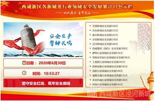 转眼间,2020年已经过半,截止2020年6月30日,泾河新城已累计平安发展544天,未发生亡人生产安全事故,在新区五个新城中处于第一梯队,安全生产形势稳定有序。