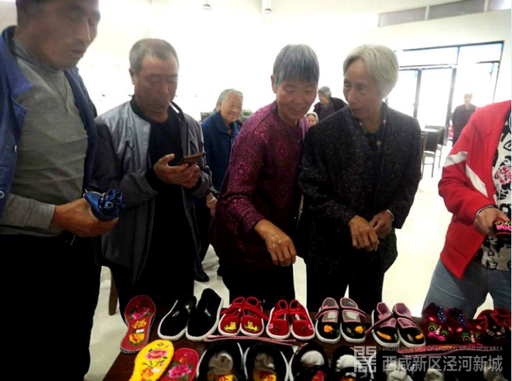 大美泾河志愿者服务队队长、西咸新区首届道德模范刘高潮,特意为乡亲们带来了“传统布艺非遗文化品-手工布鞋”系列产品,向群众介绍手工布鞋制作的前景和市场需求,介绍志愿队准备在新庄村开展的传统手工布艺加工扶贫项目,积极探索“非遗+扶贫”新模式。乡亲们纷纷表示,希望能够参加传统手工布艺项目培训,让传统手工布艺制作项目助力大家共同致富。