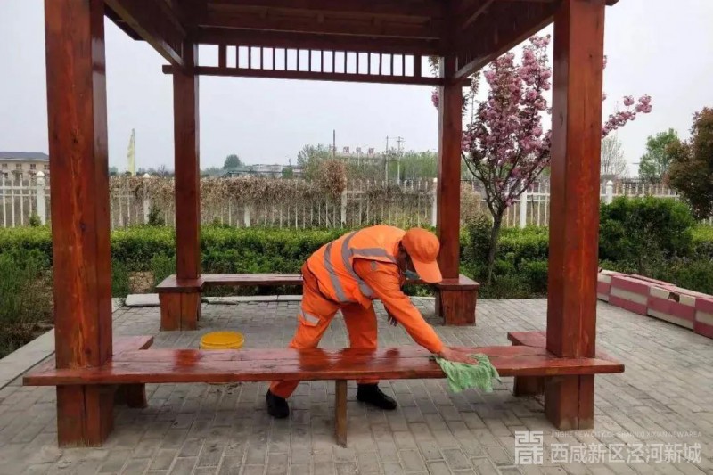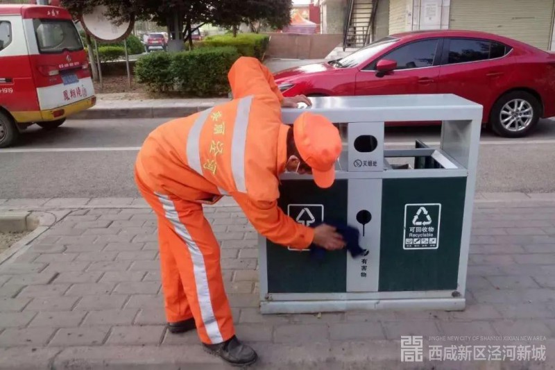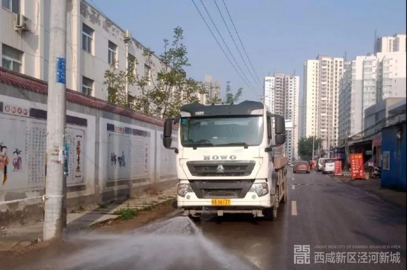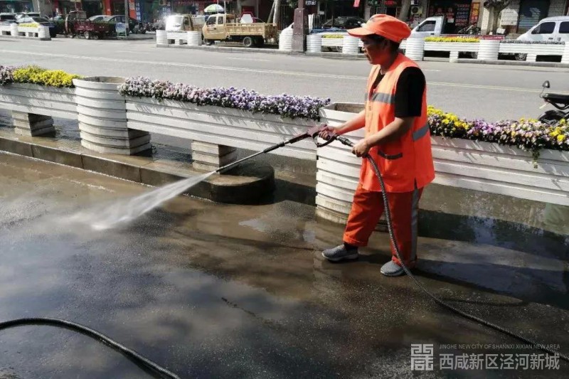 数辆大型机械洒水车冲洗着道路、灌溉车为干道旁的绿植灌溉浇水、环卫工人仔细地擦拭着公共设施......近日,在西咸新区泾河新城的街头,总能看到这样的画面。