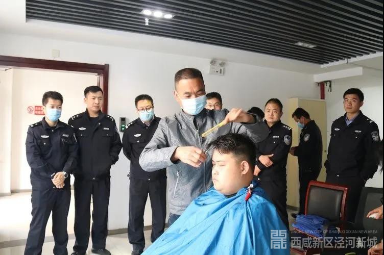 在西咸新区泾河新城的警营里,一家特别的“理发馆”临时开业了,泾河新城永宏发艺两名志愿者理发师携带理发工具和消毒工具来到泾河新城公安分局,为战斗在“抗疫”一线的公安民警辅警送来暖心的义务理发服务。