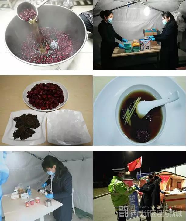 浓浓姜汤,浓浓爱意。2月19日下午,泾河城服公司分别为G211泾河大桥北口、西咸北环线泾阳交界处、正阳大道秦汉交汇处等8个疫情检查点一线工作人员送去热腾腾的“加料”姜汤,里面加了红糖和大枣,喝一口嘴里甜丝丝,心里热乎乎!为值守人员驱寒暖身,提高抵抗力、防止感冒,更是把温暖送到防疫一线工作者的心坎里。