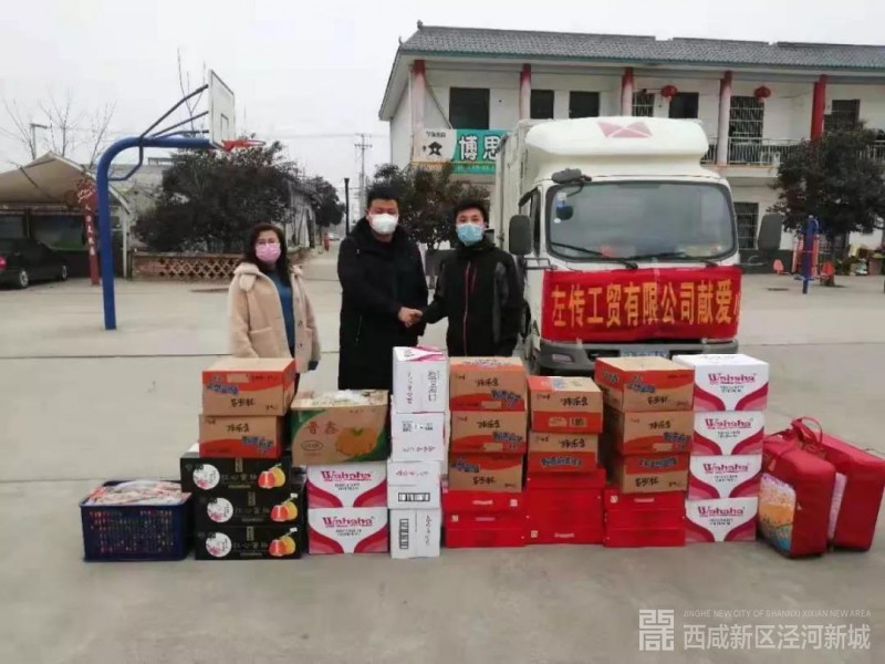 日前,泾阳左传工贸有限公司向泾河新城管委会捐赠爱心捐款30万后,又相继向泾河新城永乐镇、泾干街道进行爱心物资以及医用防护物品的捐赠。