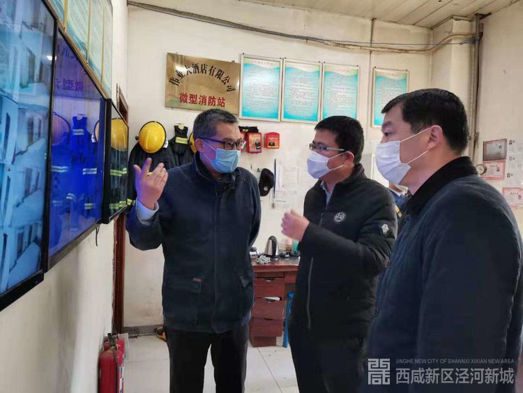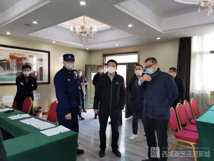 2月10日,泾河新城疫情防控工作指挥部第一物资保障组组长刘高波带领应急管理局和消防救援大队检查新城医学观察点、住宿服务点消防安全工作。