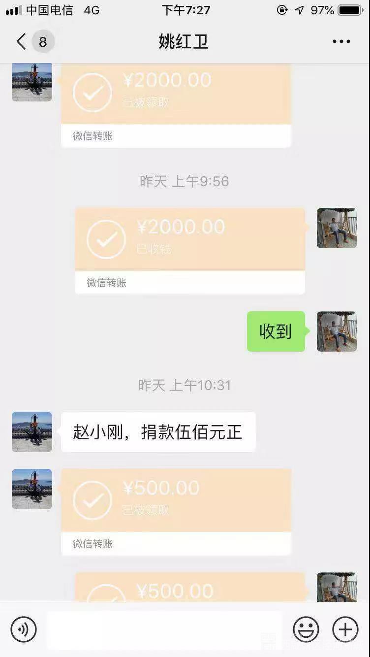 永乐镇光大慈善协会也第一时间向武汉红十字会献爱心捐款3万元,作为慈善协会会员,赵振国个人捐款1000元,希望用自己的绵薄之力为“武汉加油”。