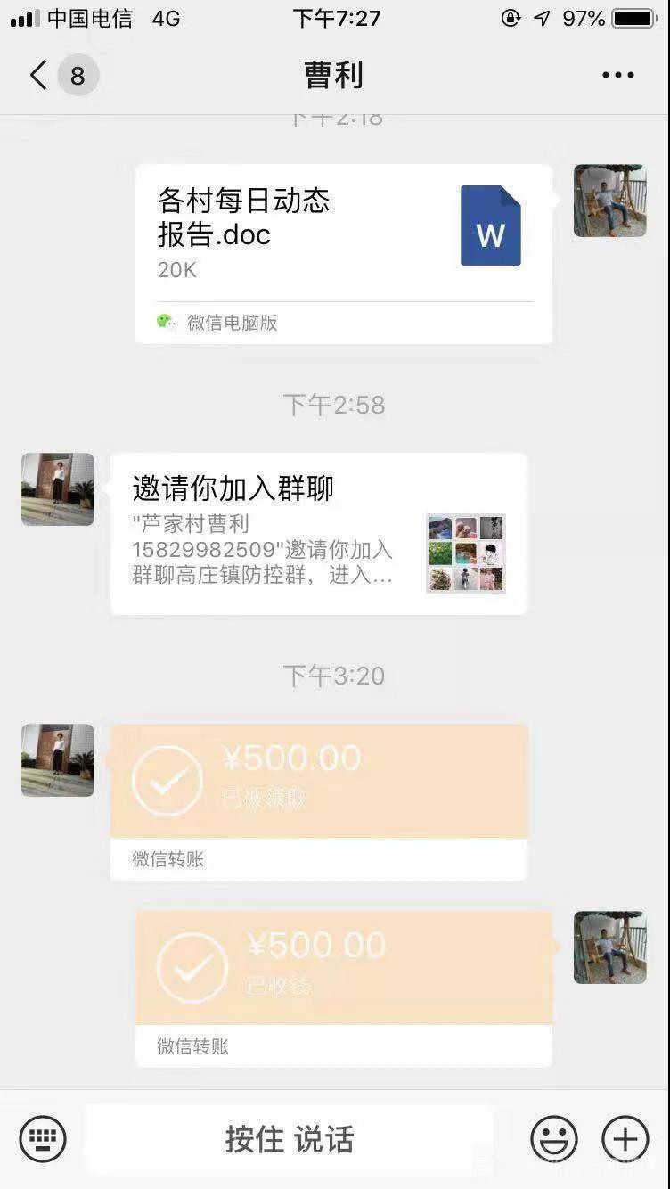 1月29日,高庄镇芦家村涌现出大量爱心人士,作为一名党员干部,姚红卫等人带头捐款做表率,自发组织的爱心捐款共计7500元。村民张永利捐赠3套活动板房在防控点使用,赵兴顺捐赠医用物资为战“疫”一线送去爱心。