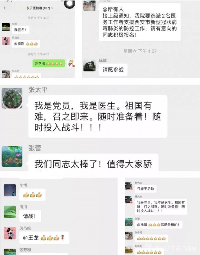 同样报名参与志愿支援防控疫情一线工作的崇文镇卫生院的李欣,没有告诉家人,他“丢下”了仅仅6个月的孩子,毅然报名。他表示,“作为一名医生,遇上这种情况,是义不容辞的,风险会有,但是我会在工作中保护好自己,才能更好的服务他人,才能更好的与大家一起防控疫情。”