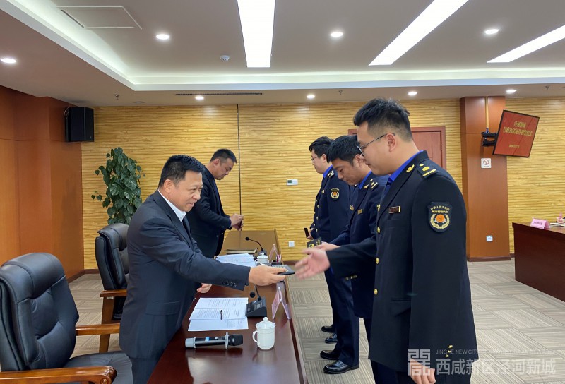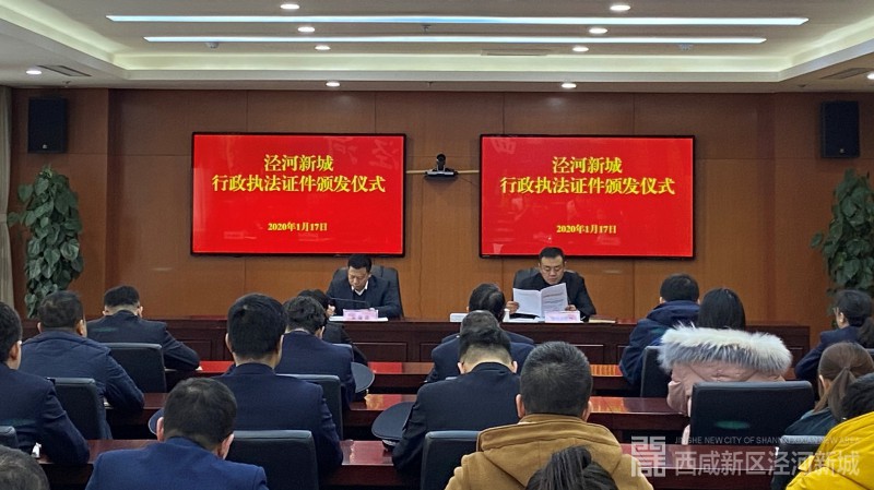 1月17日,泾河新城举行行政执法证颁发仪式,向泾河新城12家执法单位、257名执法人员颁发了行政执法证件。泾河新城党委委员、管委会副主任、全面依法治区办主任米海湖出席仪式。