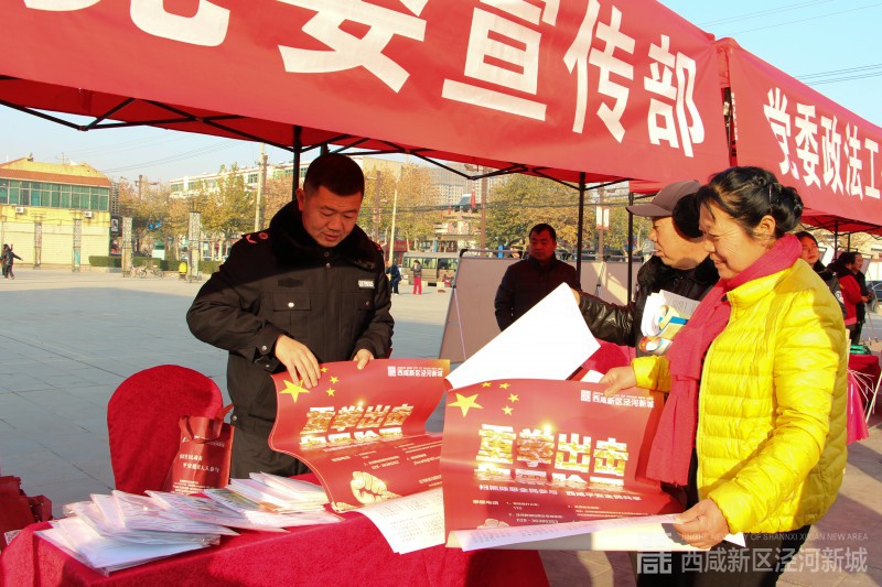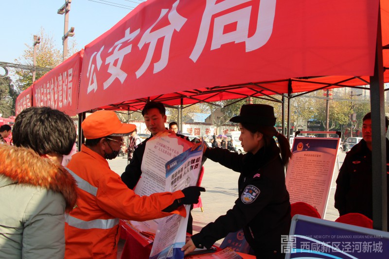 本次活动由泾河新城全面依法治区委会办公室组织,党委宣传部、应急管理局、公安分局、消防大队、税务局等20个部门联合开展普法宣传。