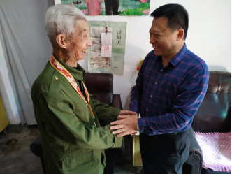 王天福老人1929年出生,1949年2月入伍,任通讯班班长,1950年4月退役。退役后在村委、村集体企业担当会计,一辈子兢兢业业、堂堂正正,过手的每笔账务毫无差错,退休后村里红白事账房离不了他的身影,他的热心、精心和细心得到了全村村民的称赞。王老年事已高,身体微恙,受米海湖委托,泾河新城人社民政局(退役军人事务局)相关负责人为卧床的王老带上了“庆祝中华人民共和国成立70周年”纪念章并送上慰问金,详细询问了老人的病情和治疗情况,安抚王老要好好休息、安心养病,尽早康复,叮嘱其家人要细心照料老人,有困难及时反映。