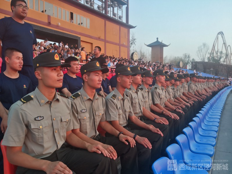为了庆祝中国人民解放军建军92周年,建军节当天,泾河新城人社民政局、改革与创新发展局联合组织辖区部分现役官兵、退役军人、退役军人家属2000余人观看《秦汉•风云》大型史诗战争特效演艺,表达了对人民解放军、退役军人的崇高敬意。