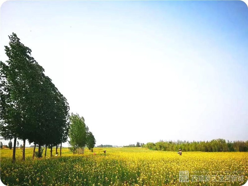 油菜花海位于泾河南岸便桥及便道两侧区域,金灿灿的油菜花交相辉映,如诗如画,让人目不暇接。