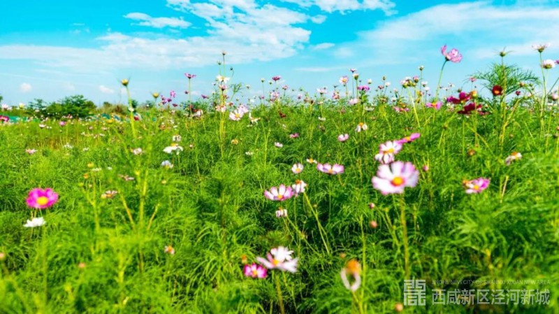 7月,你想要去哪里偶尔给身体和灵魂放个假,来泾河新城吧!一个天蓝水碧,空气分外清新的地方,一片波斯菊花正在泾河河滩沿岸盛开~