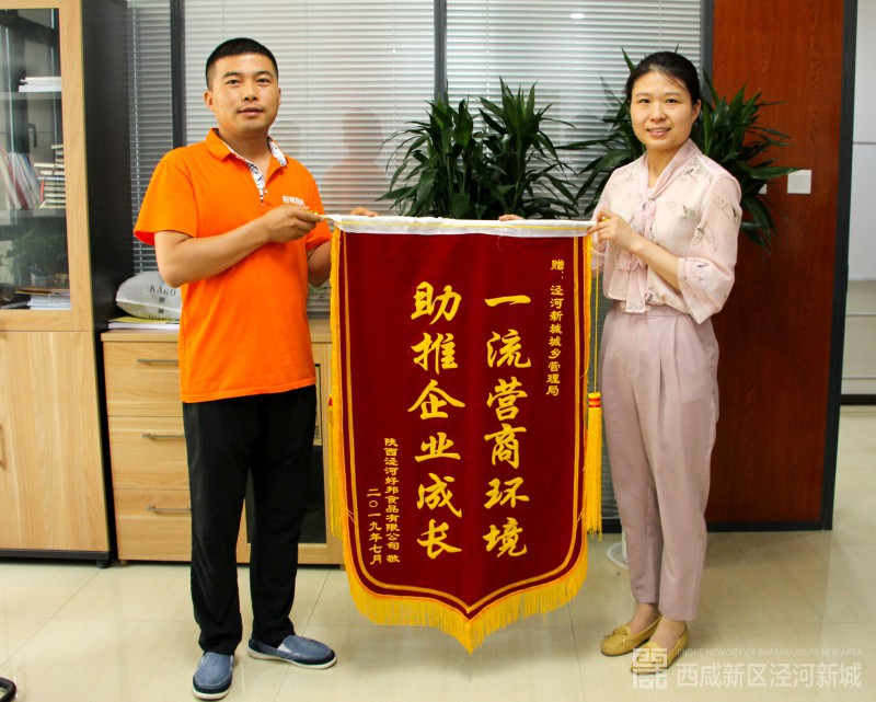 7月16日,陕西泾河好邦食品有限公司总经理雷军峰一行4人专程来到泾河新城城乡管理局,送来一面印有“一流营商环境,助推企业成长”的锦旗,表达近年来泾河新城不断优化营商环境,帮助企业发展的感激之情。