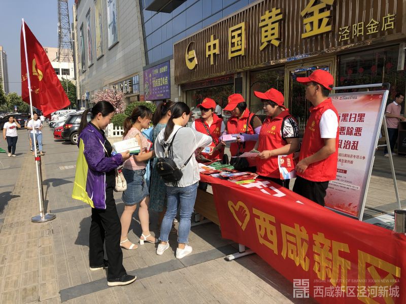 6月7日,西咸新区泾河新城宣传部(文明办)指导辖区志愿服务队,在泾干街道大唐购物中心门口,举行了以宣传扫黑除恶专项斗争知识的为主题的志愿者宣讲活动。
