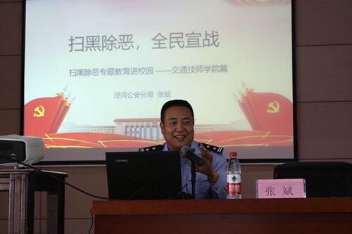 近年来,黑恶势力活动逐渐趋于隐蔽,其组织形态、攫取利益的方式也在发生变化,甚至通过不良“校园贷”等方式悄悄渗入校园环境。为进一步普及扫黑除恶专项斗争政策法规,加强学生自觉远离社会黑恶势力意识,同时加强校园法制宣传教育力度。4月25日上午,泾河新城公安分局政秘科科长张斌和分局刑侦大队民警一同走进陕西交通技师学院,为学院师生上了一堂妙趣横生的扫黑除恶专题宣讲课。