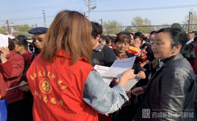 活动中社区志愿者向群众宣读“清明节文明祭扫倡议书”,号召群众清明节绿色祭祀、环保祭祀。