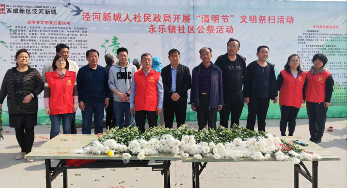 2019年清明将至,在这缅怀逝者、寄托哀思、感恩先辈的传统日子里,为更好传承清明节传统文化内涵,为构建和谐生态保护意识,引导群众丢弃不文明祭祀习惯,4月4日上午西咸新区泾河新城人社民政局在泾干街道办、永乐镇举行了泾河新城首届大型社区公祭活动。