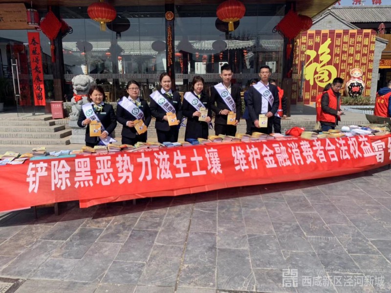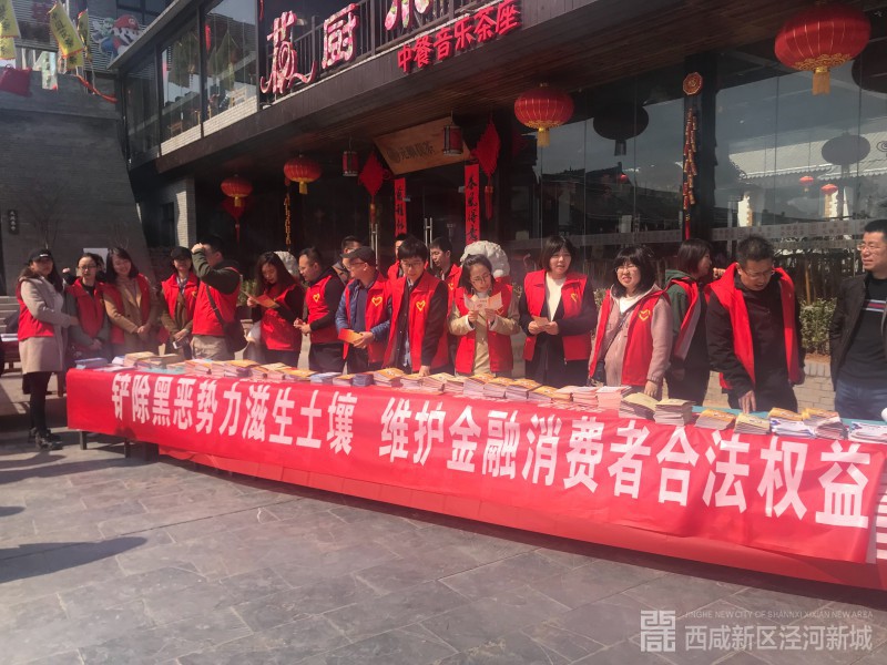 3月12日,西咸新区金融办携手人民银行西安分行来到泾河新城茯茶镇,联合泾河新城改创局、陕西信合泾阳联社共同开展“铲除黑恶势力土壤,维护金融消费者合法权益”为主题的金融知识宣传活动。
