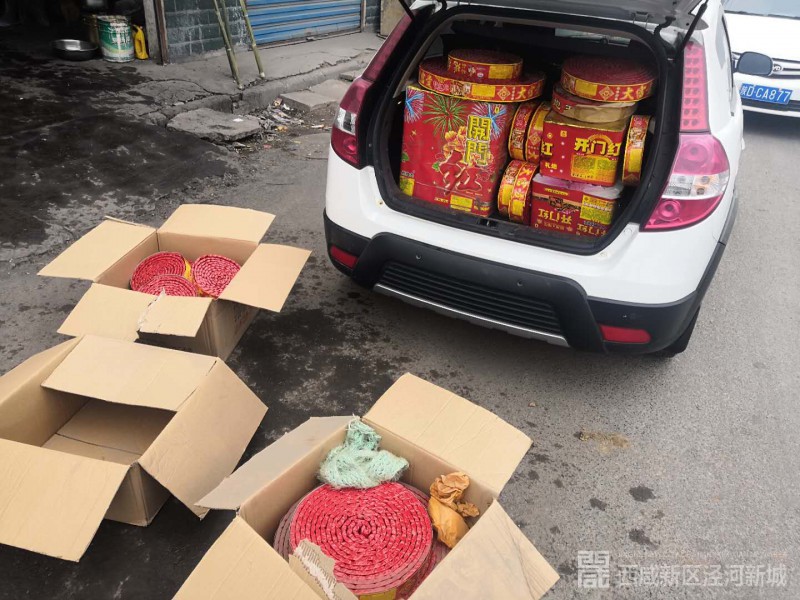 1月18日,泾河新城市监分局持续开展对辖区商场、超市、副食店等场所禁售禁燃烟花爆竹工作专项检查中,发现崇文所辖区一零售店贩售烟花爆竹违法行为,执法人员没收在售烟花爆竹,现场对商户进行宣传教育,并依据相关规定对商户进行处理。
