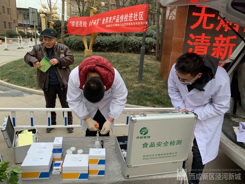 为进一步做好西安市政府2018年“十大实事”工作,切实为民办事,让群众充分共享办好实事的成果。12月29日,泾河新城市监分局在祥安雅居花园小区开展食用农产品快速检测进社区活动。