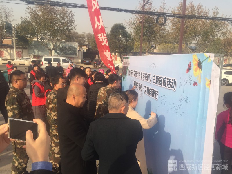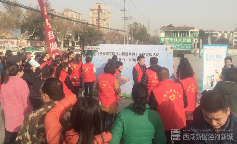 11月28日,由西咸新区泾河新城党委宣传部、泾河新城文明办、泾干街办联合举办的《西安市文明行为促进条例》主题宣传活动,在泾干湖广场举行。