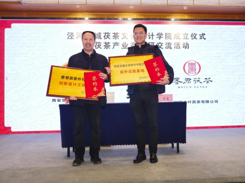 活动邀请了省内6所艺术设计类高校参与,探讨泾河新城茯茶文化设计和产业发展方向,推进茯茶文化进校园活动、茯茶设计专业、示范基地等创建工作,助推茯茶文化产业年轻化发展,探讨校企合作产业方式,搭建大学生茯茶文创合作基地。论坛上,陕西科技大学轻工科学与工程学院、西安交通大学城市学院艺术系、西安理工大学印刷包装与数字媒体学院、西安科技大学艺术学院、西安培华学院建筑与艺术设计学院、陕西职业技术学院环境艺术学院联合发起成立泾河新城茯茶文化设计学院,并分别与墨君茯茶、裕兴重、茯源祥、右任故里、朴道茶业、百富茯茶签署校企合作协议。