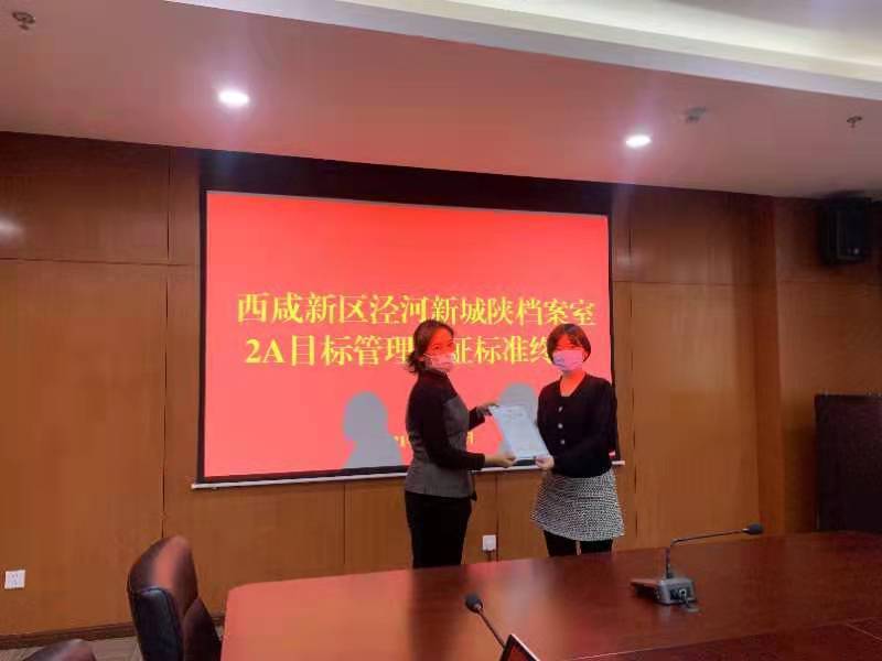 认证组详细查看了认证相关材料和档案整理、管理及利用情况后,对照《陕西省档案工作目标管理认证办法》逐项检查,量化评分。经综合评议,认为西咸新区泾河新城管委会档案管理工作达到了陕西省档案工作目标管理AA级标准,并现场授牌。最后,认证组对此次认证表示祝贺,并指出泾河新城重视档案工作,为档案工作开展创造了很好的条件。同时,希望今后要继续加强档案宣传和档案利用率,完善档案信息化应用,让档案发挥相应的社会效益。