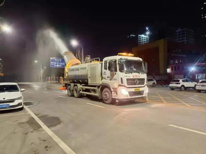 泾河新城环卫车队于2021年12月26日18时开始,再次对泾河新城全区域主干道路进行消杀。截至目前,共出动雾炮车5车次,作业人员10人,已完成一半区域的消杀,预计23时左右完成新城全域消杀工作。