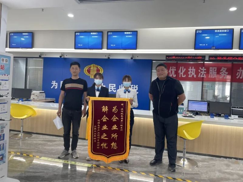 创维电子产业园项目指挥部工作人员表示:“因项目办理事项较多,此时正在办理业务的纳税人也排满了窗口,以为需要耗时一整天。就在此时,政务大厅帮办岗的工作人员主动问询,全程指导帮办,带领我在自助区预审资料,并指导我进行资料填报,在此基础上工作人员将资料带给办事窗口,由窗口工作人员一窗受理,即时办理,很快就帮我办结了税务第三方协议的签订,以及国有土地使用权出让的申报及缴纳。他们用暖心和真心换得了我们的舒心和省心,所以特地制作一面锦旗表达我们的感谢之情。”