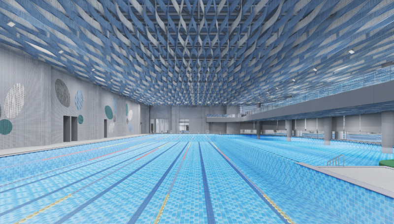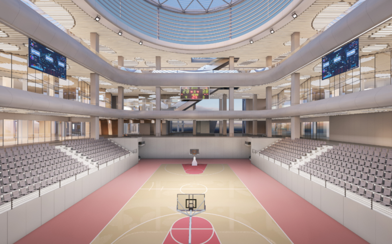 内部空间方面,共设置上下五层(地下一层至地上四层),包含游泳中心、羽毛球馆、篮球馆等运动场所,并配套有健身房、电竞中心等场馆。