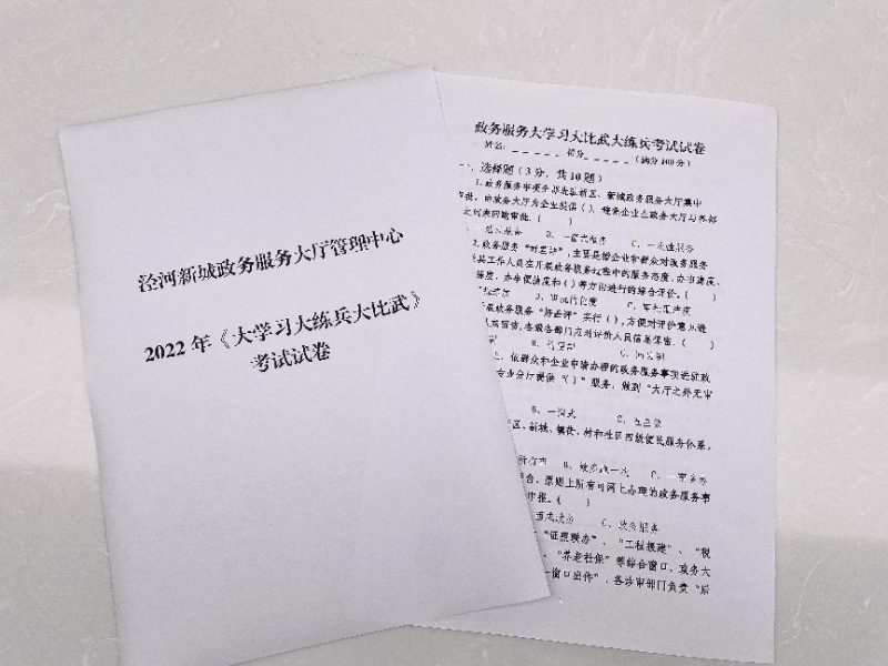 为全面提升政务服务能力和专业水平,近日,西咸新区政务服务(泾河)中心组织开展“大学习大练兵大比武”综合知识能力测试活动,不断提升窗口工作人员业务能力和服务水平。