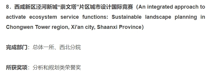 8月30日,国际风景园林师联合会(IFLA)公布了2021国际风景园林师联合会亚非中东地区风景园林奖(IFLA AAPME)的获奖名单。今年共有318个项目申报该奖项,10个类别的204个项目荣获殊荣。其中,在清华同衡获奖的10个项目中,西咸新区泾河新城“崇文塔”片区城市设计国际竞赛项目荣膺分析和规划类荣誉奖。