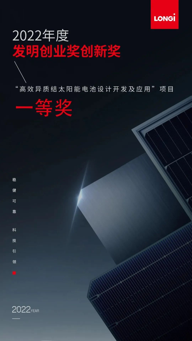 近日,2022年度中国发明协会“发明创业奖创新奖”评审结果揭晓,隆基绿能科技股份有限公司中央研究院“高效异质结太阳能电池设计开发及应用”项目,荣获一等奖。