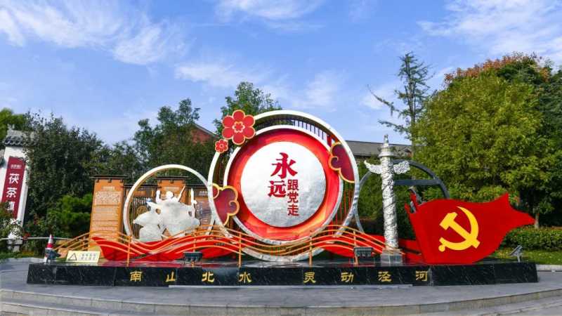 美丽的金秋十月“喜迎二十大”主题街景亮相泾河新城,茯茶镇、崇文塔北路、寿平转盘、泾河大道……