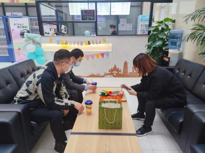 开业当天,来大厅办理业务的李女士和同事正好赶上水吧优惠活动,在等待的空档和同事一起点了奶茶,坐在一起聊聊天,时间转瞬即逝。